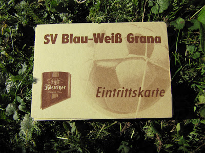 In der Zeitzer Ecke wurde an diesem Sonntag ziemlich viel Fußball gespielt. Allerdings alle zeitgleich. Wir suchten uns die Partie des SV Blau-Weiß Grana aus, die auf einer nicht uninteressanten Sportanlage spielen. Der Platz mit den Kastanien und Holzbänken auf dem Graswall auf der einen Seite wäre allerdings auf der anderen Seite, an der sich ein Kleinfeldplatz und ein Großfeldplatz mit Graswall anschließen, reichlich kahl, wenn da nicht der große Komplex der Zuckerfabrik, der auch deutlich zu riechen war, anschließen würde.